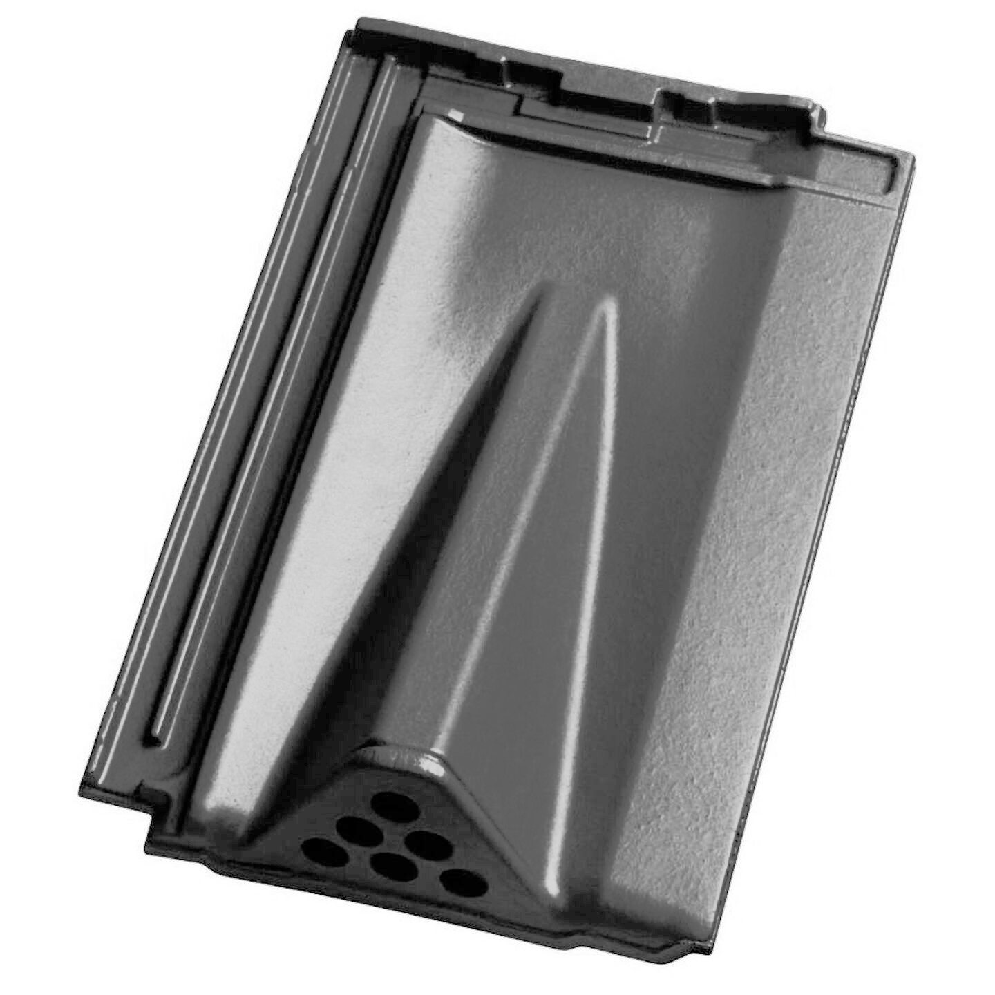 Taška větrací – systém Tondach naplňuje zásady větraného střešního pláště. K tomuto účelu se tašky umisťují v druhých řadách po obou stranách hřebene střechy (ev. nároží) v potřebném množství (cca 28 ks/100 m²).