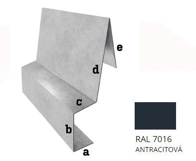 Hliník tl. 0,6 mm - Závětrná lišta záv. r.š. 250 - RAL 7016 černá antracit