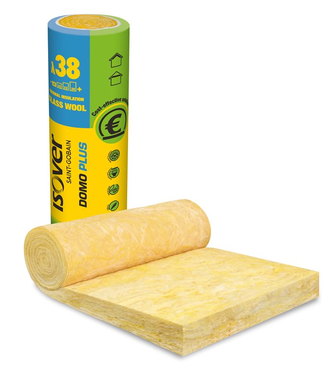 Isover Domo Plus je skelná izolace, která se používá pro zateplení šikmých střech, půd (nepochozích), stropů a také sádrokartonových podhledů. Má také vynikající absorpci zvuku. Při použití Isover Domo Plus je nezbytné skelnou izolaci chránit (např. parotěsnou fólií). Pyšnit se může svou dlouhou životností a nehořlavým materiálem. Velmi dobře propouští vodní páry a dokáže odolat i dřevokazným škůdcům, hlodavcům i hmyzu. Velkým plusem je také hygienická a ekologická nezávadnost. S Isover Domo Plus jde také velice dobře pracovat, neboť jde v případě potřeby upravit ořezáním.