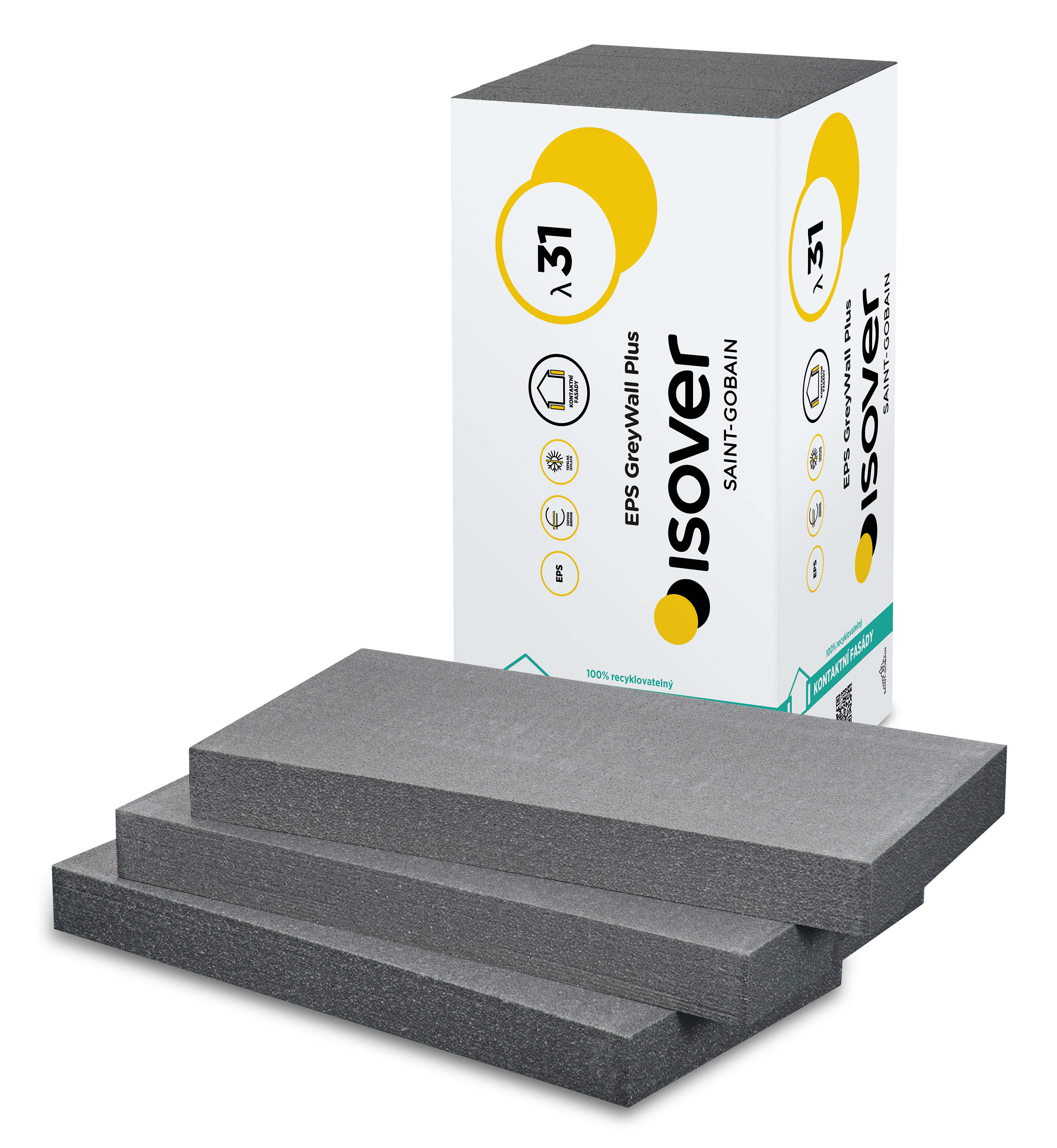 Izolační desky Isover EPS GreyWall jsou grafitovým izolantem nové generace se zvýšeným izolačním účinkem. Desky obsahují nanočástice grafitu, který odráží teplo zpět k jeho zdroji a tak zvyšují izolační účinek. Jsou určeny zejména pro vnější tepelně izolační systémy ETICS, nejčastěji pro energeticky úsporné domy (nízkoenergetické a pasivní stavby). Desky se používají jak pro rekonstrukce tak pro novostavby, kde při minimální tloušťce dosahují vysoký izolační účinek. Jsou určeny pro trvalé zatížení v tlaku max. 1200 kg/m2 při deformaci < 2%.