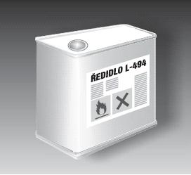 U P O Z O R N Ě N Í : Ředidlo L-494 obsahuje tetrahydrofuran (THF), což je prchavá, lehce vznětlivá, jedovatá bezbarvá kapalina. Výpary škodí zdraví! Hořlavina I. třídy!