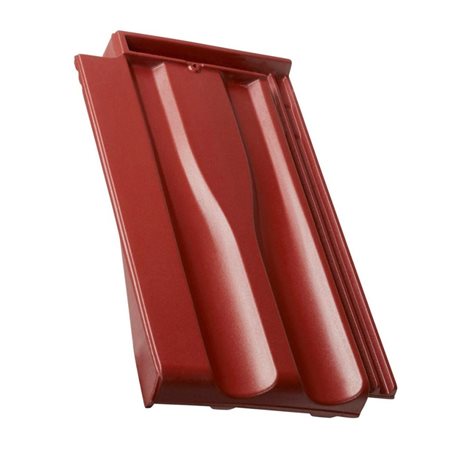 Taška okrajová levá – konstrukčně nejlepší řešení bočního ukončení střechy představují okrajové tašky. Tvoří ideální ochranu štítu do stran tvarovanou bočnicí. Výška štítové bočnice je v rozmezí 50–80 mm. Při krycí délce v rozmezí 340–390 mm je nutné upravit tašku řezem v levé horní části.