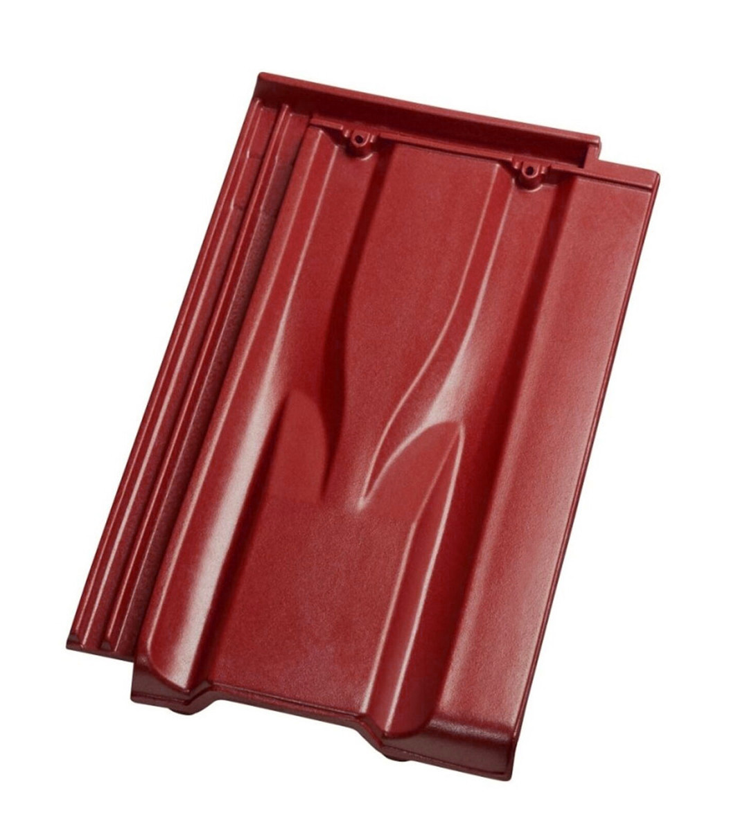 Taška větrací – systém Tondach naplňuje zásady větraného střešního pláště. K tomuto účelu se tašky umisťují v druhých řadách po obou stranách hřebene střechy (ev. nároží) v potřebném množství (cca 20 ks/100 m²).