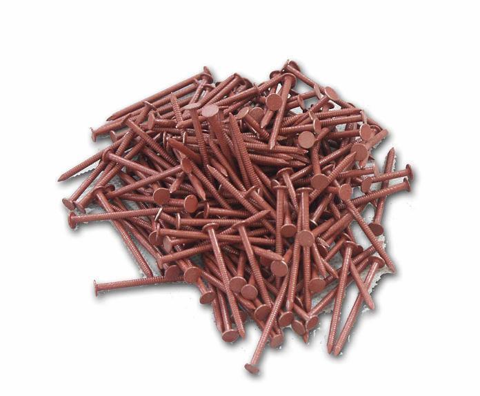Nerezový barevný hřebík 2,5x45 v pásu pro kotvení krytiny Satjam Bond do dřevěného podkladu nastřelovací pistoli. Je opatřen drážkováním.