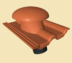 Taška betonová odvětrací je technickým zdokonalením tašky plastové odvětrací. Taška betonová odvětrací je originální celobetonový prvek pro odvětrání kanalizačních stupaček, koupelen, WC, příp. nezateplených částí střech.