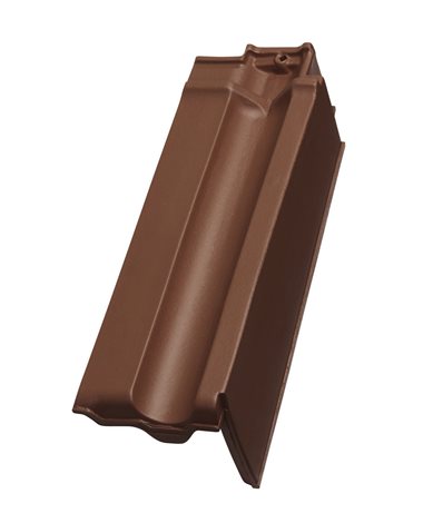 Taška okrajová pravá – konstrukčně nejlepší řešení bočního ukončení střechy představují okrajové tašky. Tvoří ideální ochranu štítu do stran tvarovanou bočnicí. Výška štítové bočnice je v rozmezí 100– 125 mm.