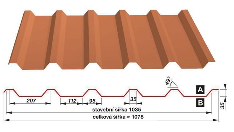 Trapézové plechy SAT35 - SAT35 0,50 mm 207/1035 PES 25 - RAL 9005 Černa