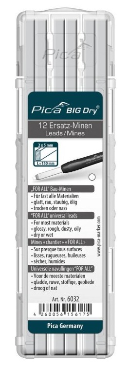 Značkovače - PICA BIG Dry náhradní tuhy hran. (bílé) - Bílá
